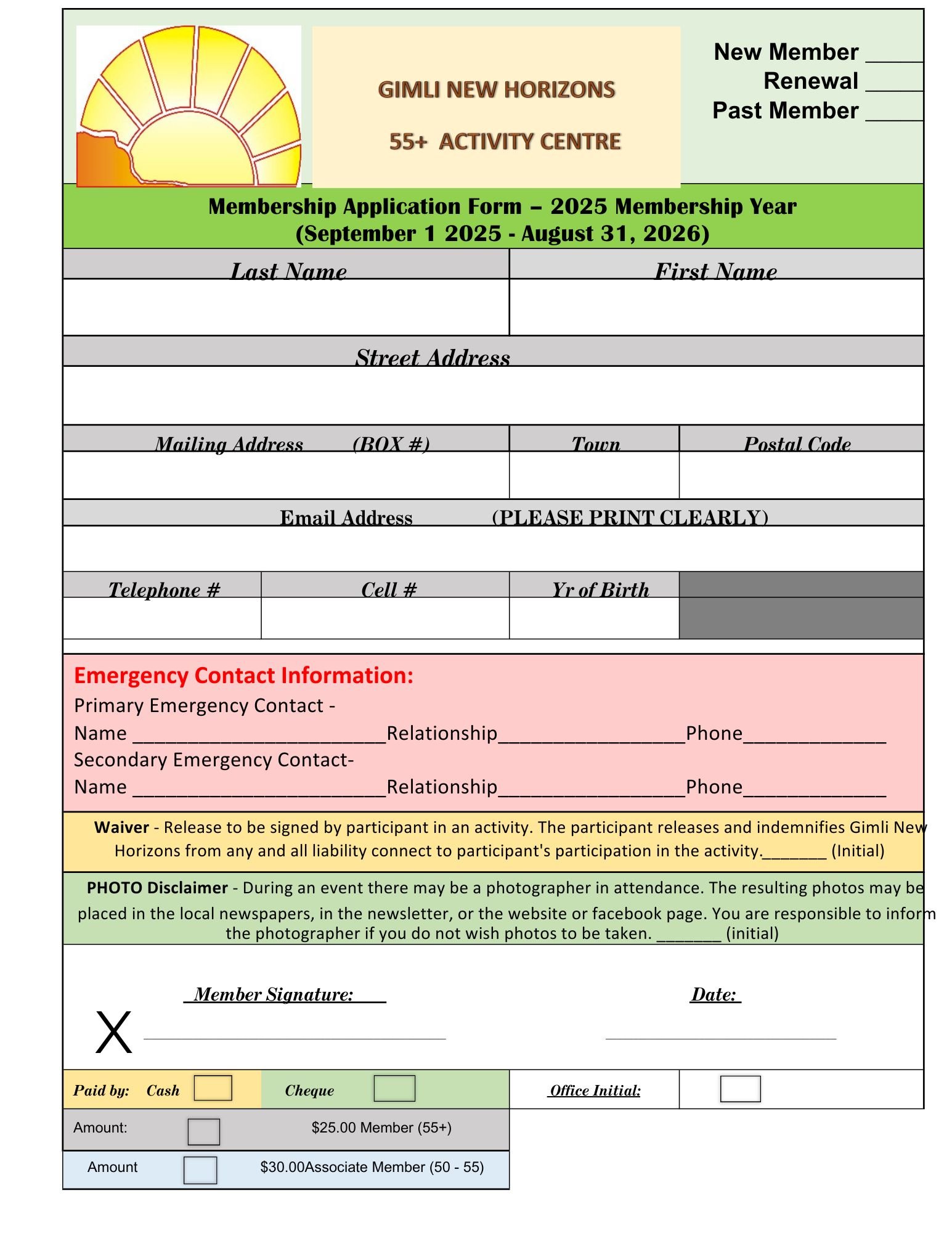 Feel free to print off the form and bring it to the Centre along with your payment (cash or cheque accepted).